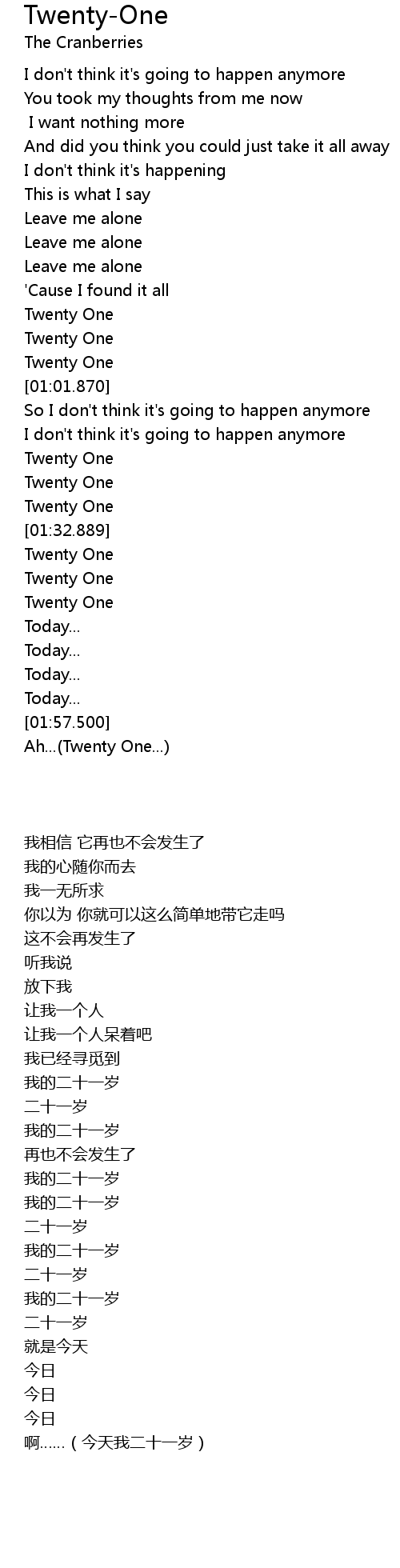 | [01:39.20] | Twenty One |