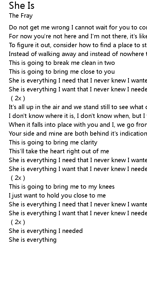 | [02:49.73] | She is everything I need that I never knew I wanted |