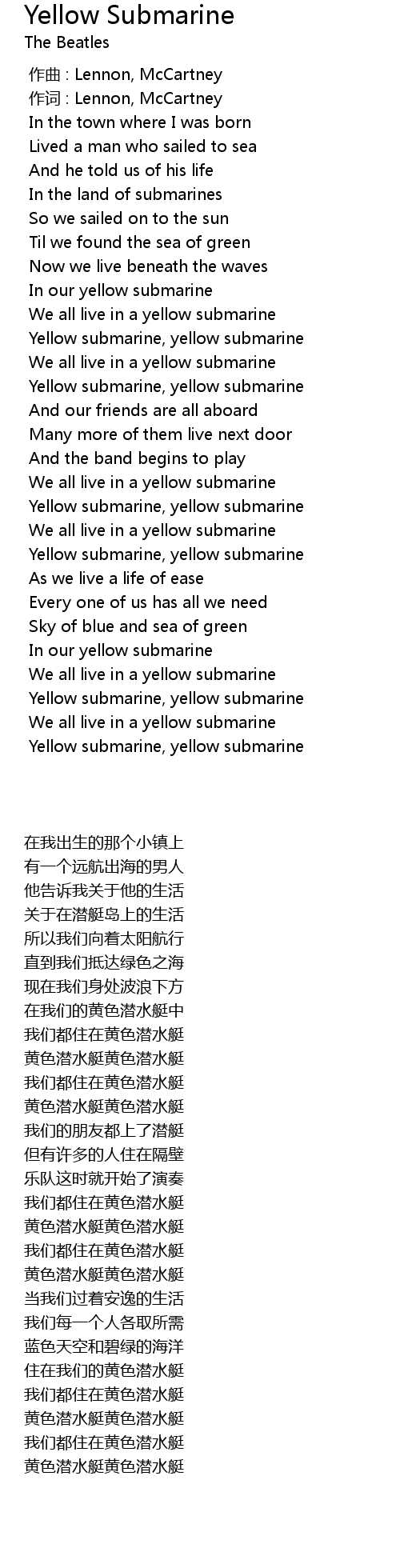 | [02:15.0] | 黄色潜水艇黄色潜水艇 |
