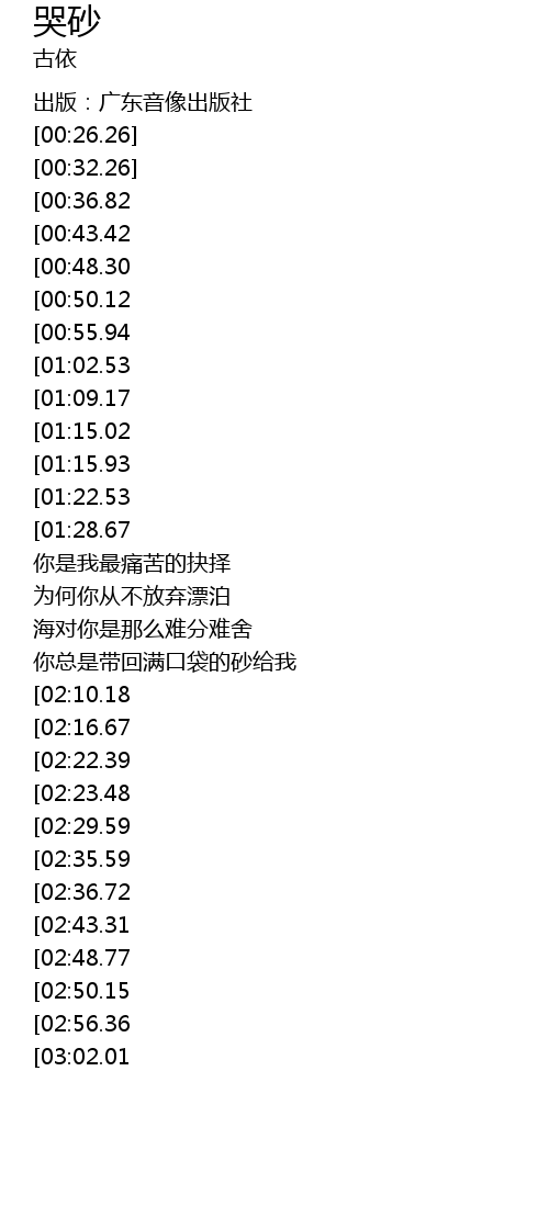| [04:50.05][02:50.15] | 风吹来的砂 冥冥在哭泣 |
