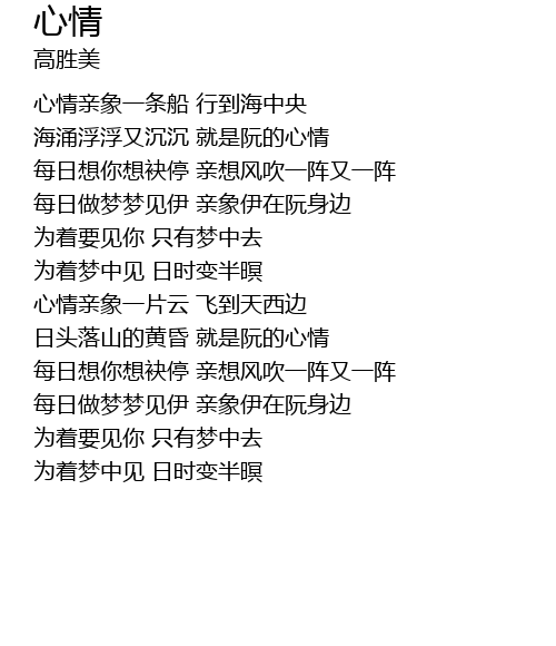 | [00:34.400] | 海涌浮浮又沉沉 就是阮的心情 |