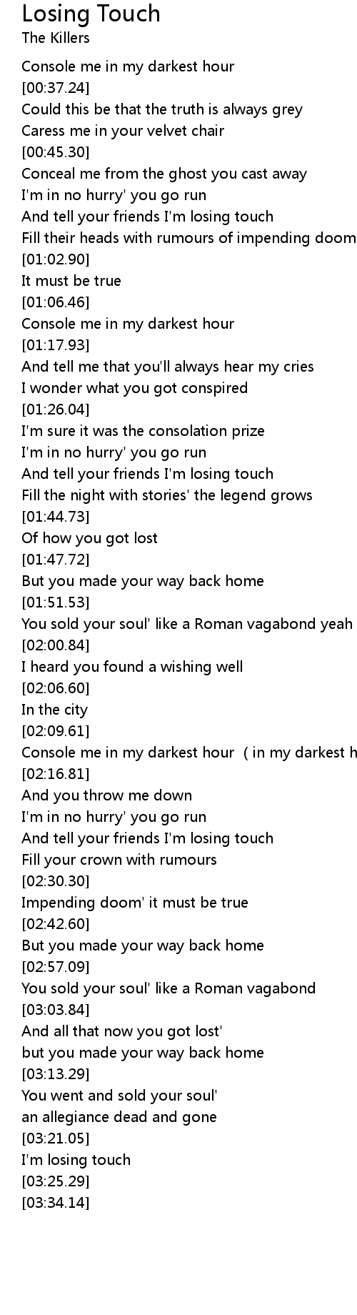 | [03:23.29] | I' m losing touch |