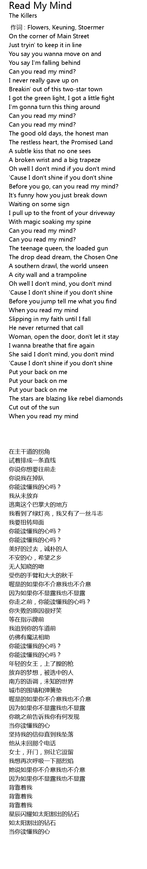 | 歌曲 | Read My Mind |