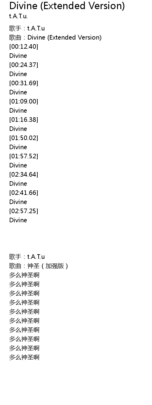 | [00:08.40] | 歌曲:神圣(加强版) |