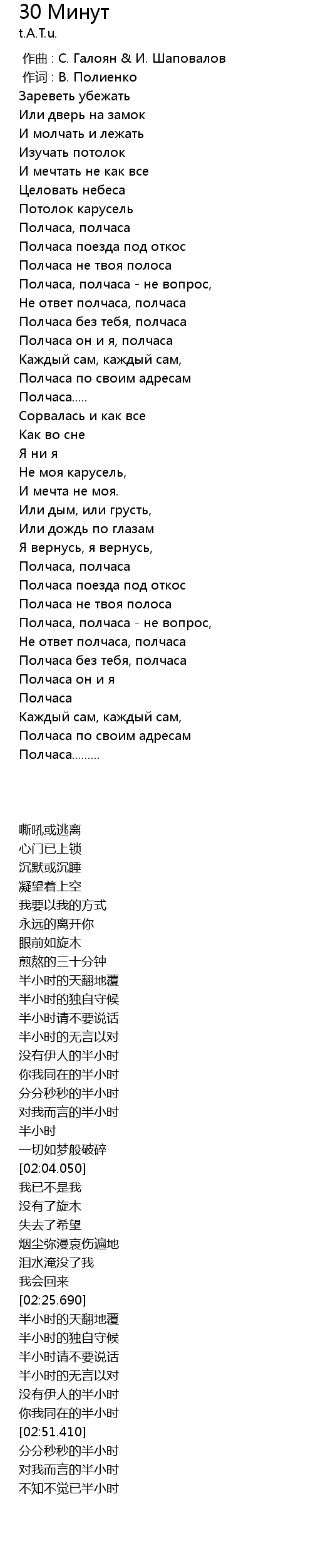 | [02:51.410] | Полчаса |