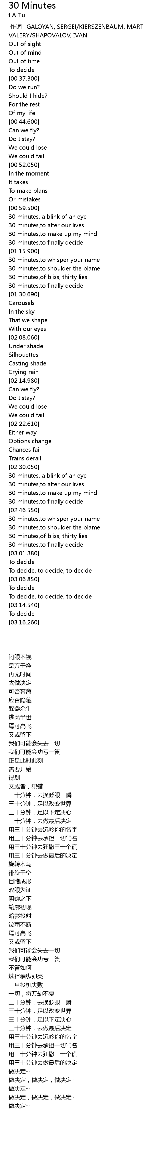 | [02:43.380] | 三十分钟,去做最后决定 |