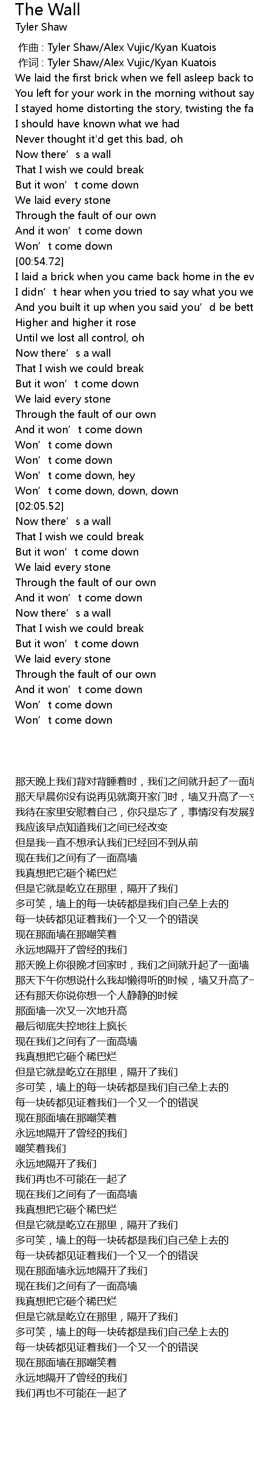 | [00:45.51] | 多可笑,墙上的每一块砖都是我们自己垒上去的 |