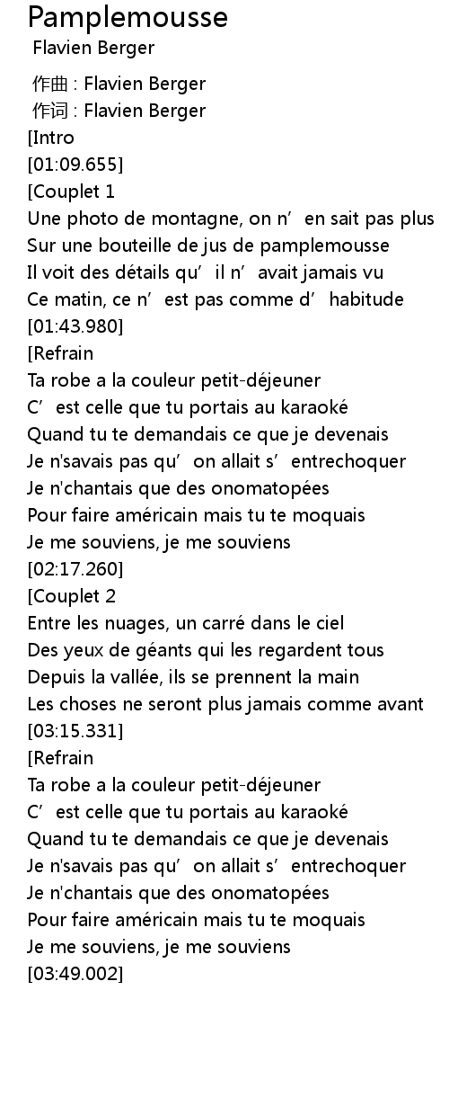 | [00:00.000] | zuò cí : Flavien Berger |