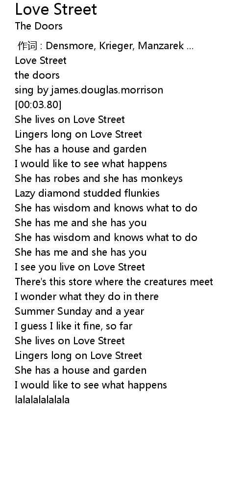 | [00:00.00] | 作词 : Densmore, Krieger, Manzarek ... |