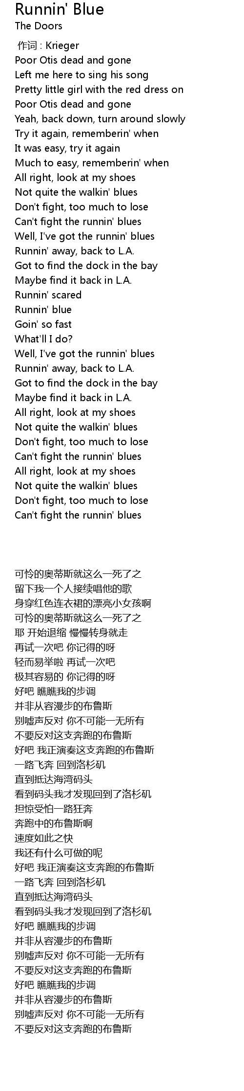 | [02:09.31] | 不要反对这支奔跑的布鲁斯 |