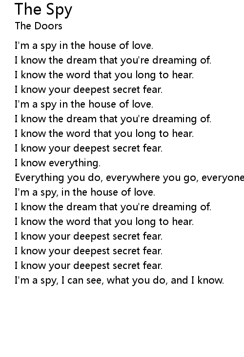 I'm a spy, in the house of love. |