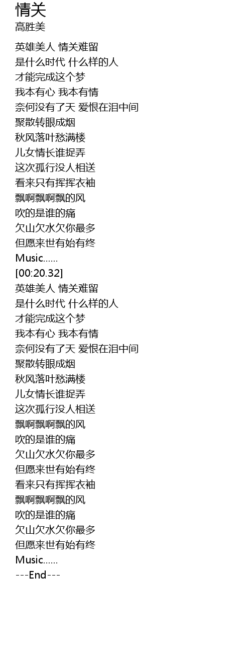 | [02:34.99] | 英雄美人 情关难留 |