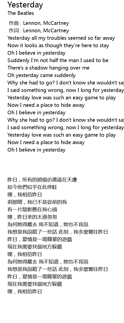 | [00:01.00] | 作词 : Lennon, McCartney |