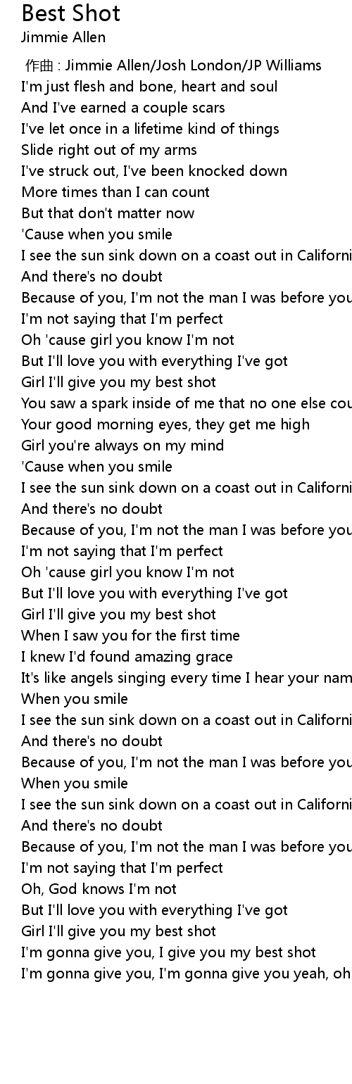 | [00:56.48] | Girl I' ll give you my best shot |