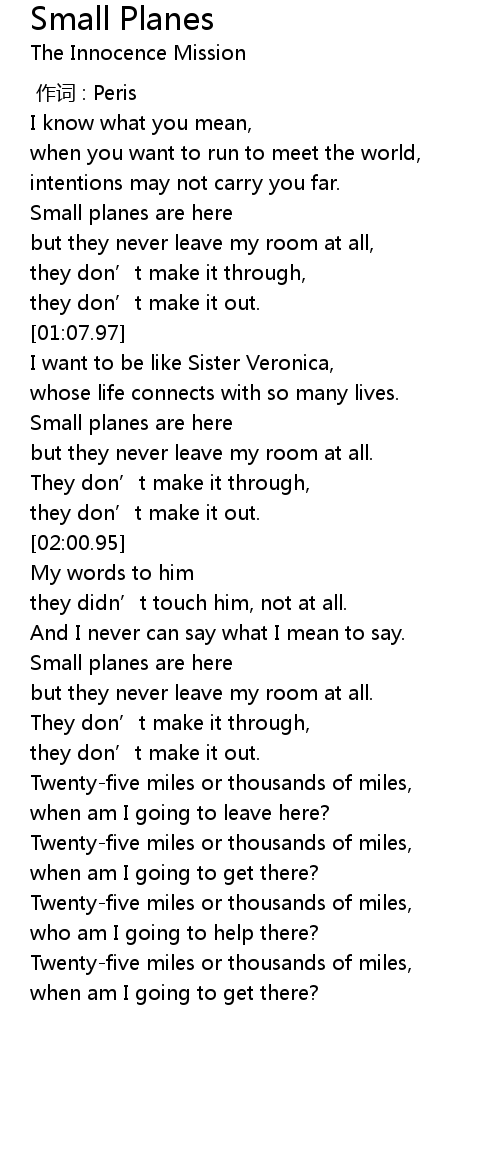 | [03:04.05] | Twentyfive miles or thousands of miles, |