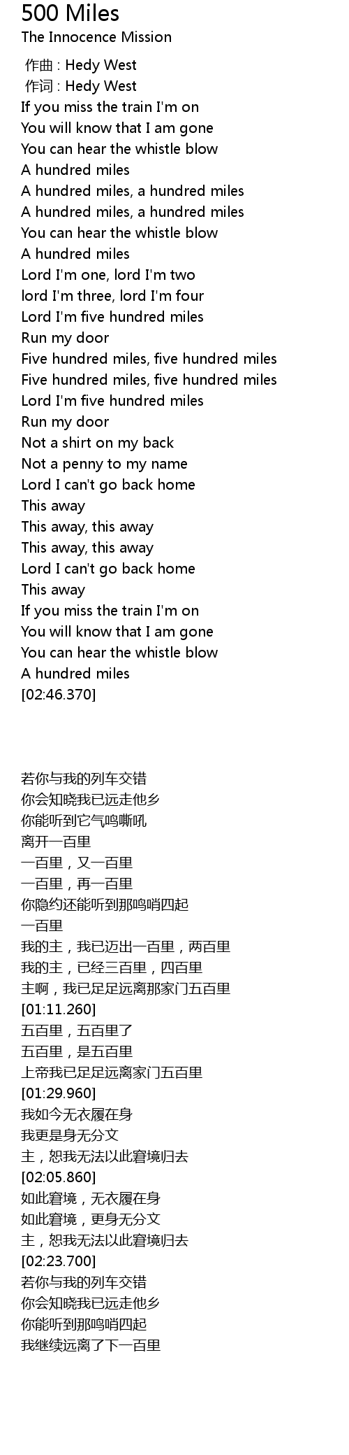 | [02:41.500] | A hundred miles |