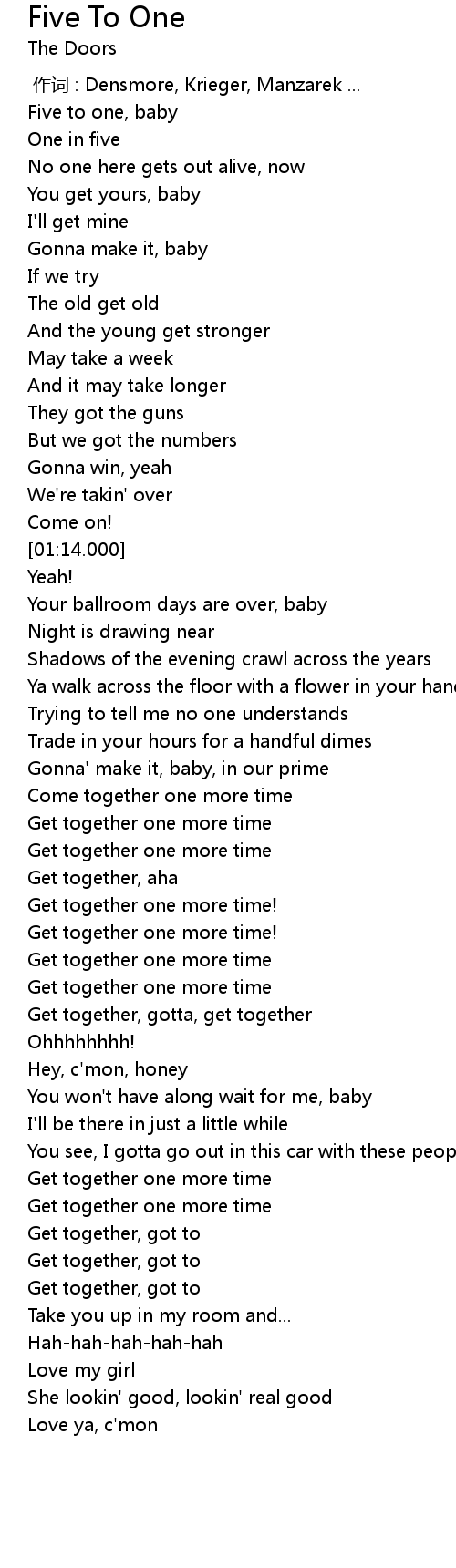 | [00:00.00] | zuò cí : Densmore, Krieger, Manzarek ... |