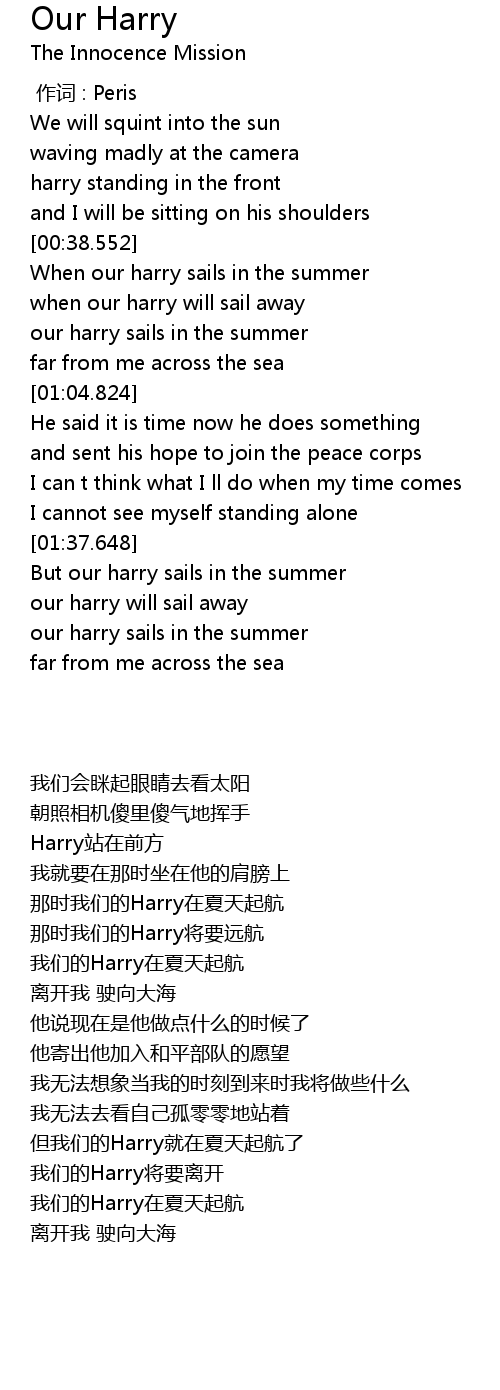 | [00:50.229] | 我们的Harry在夏天起航 |