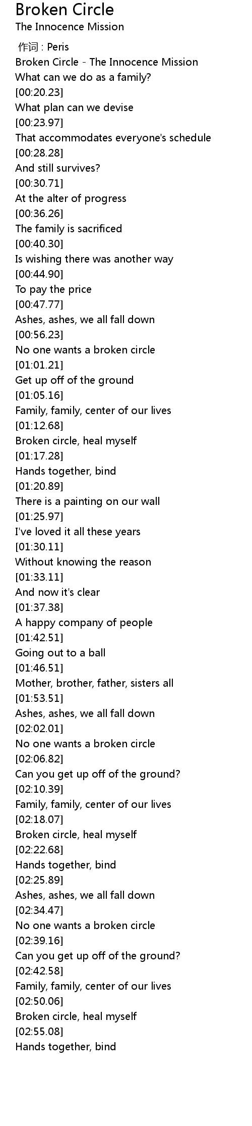 | [00:01.16] | Broken Circle The Innocence Mission |