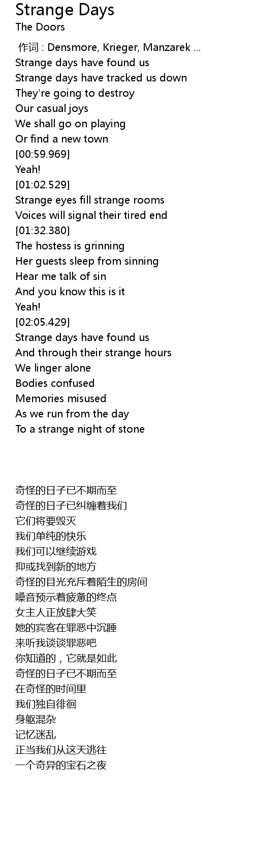 | [00:00.00] | zuò cí : Densmore, Krieger, Manzarek ... |