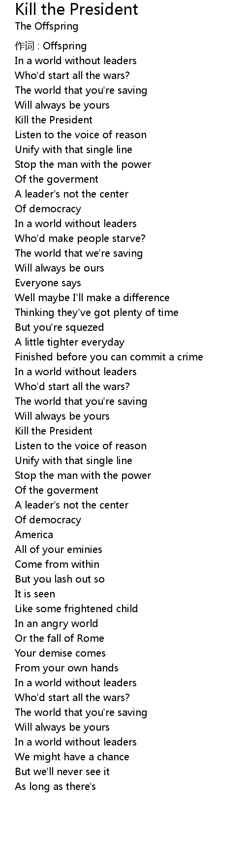 | 歌曲 | Kill the President |