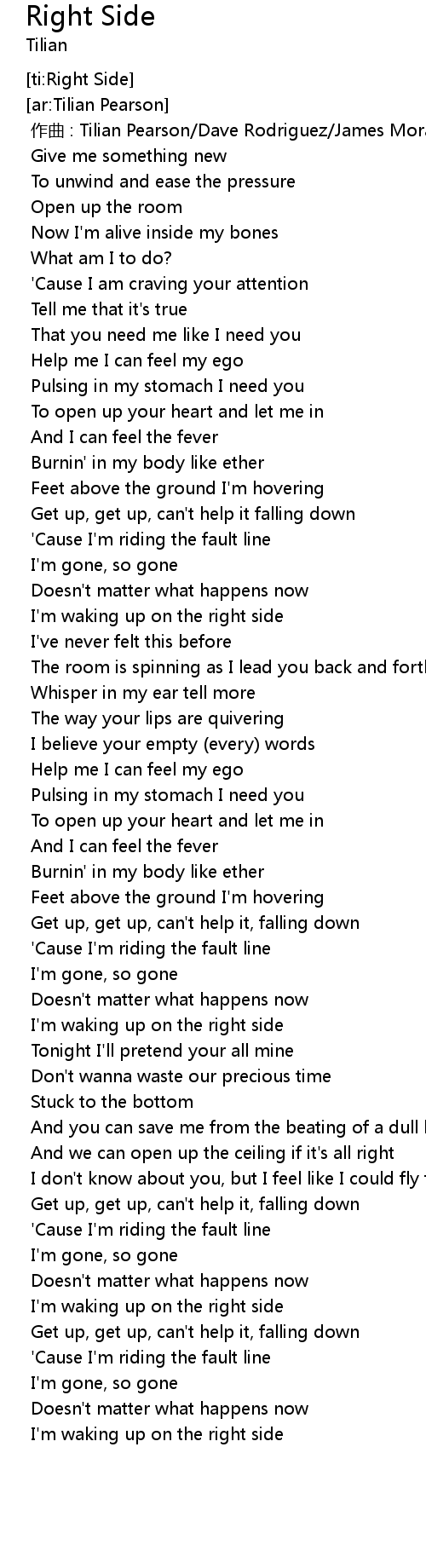 | [02:17.004] | ' Cause I' m riding the fault line |