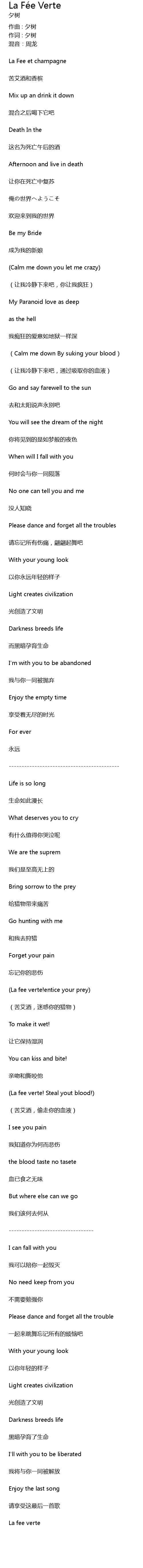 | 歌曲 | La Fée Verte |