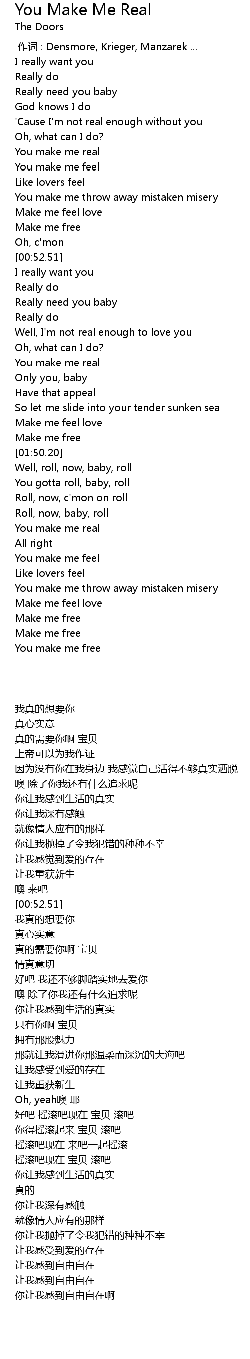 | [00:22.91] | ' Cause I' m not real enough without you |