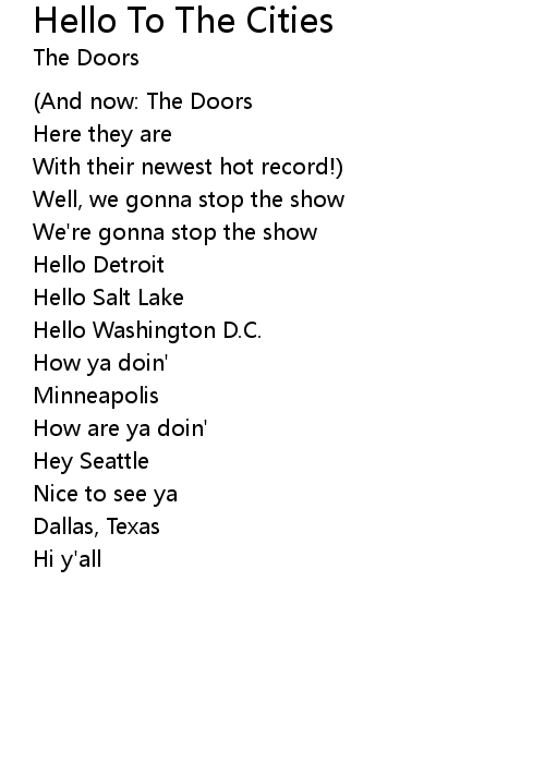 | 歌曲 | Hello To The Cities |