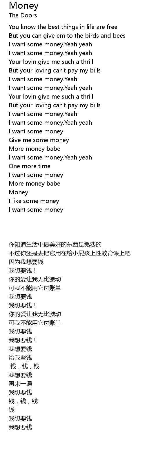 I want some money.Yeah yeah |