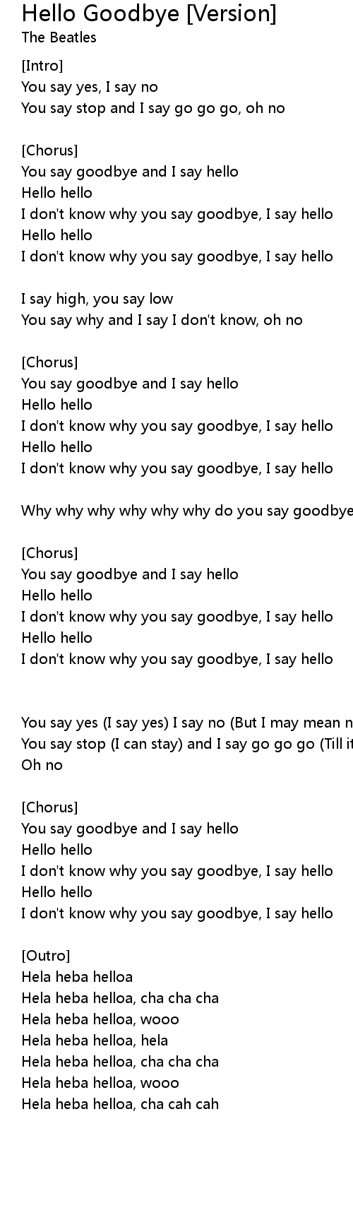 Hello Goodbye [Version] 歌词