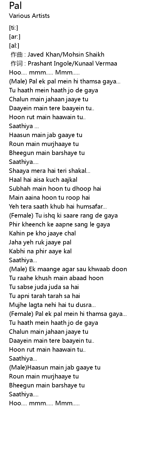 | [00:41.88] | Chalun main jahaan jaaye tu |