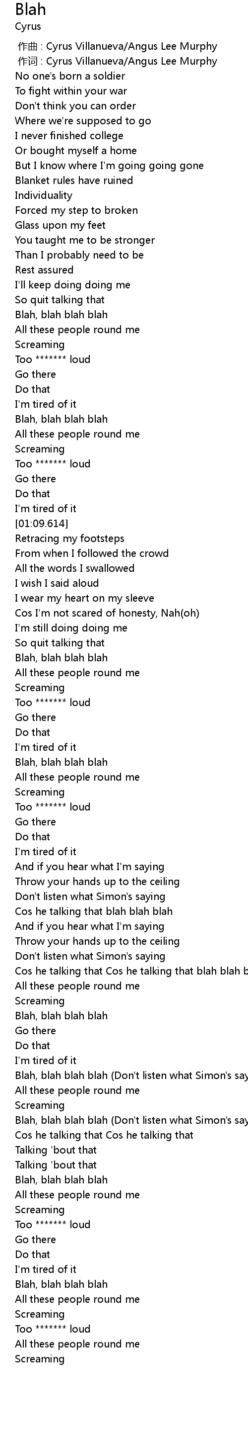 | [01:33.201] | Blah, blah blah blah |