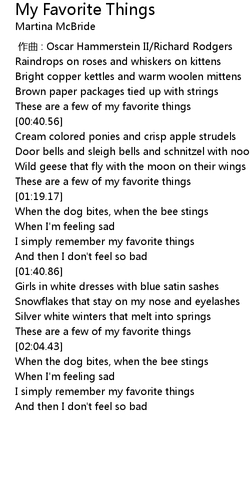 | [01:59.38] | These are a few of my favorite things |