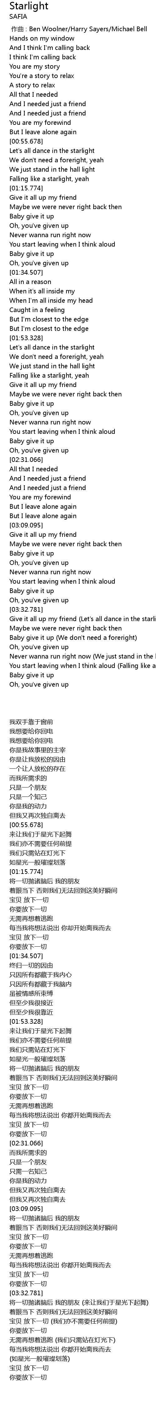 | [03:34.030] | 将一切抛诸脑后 我的朋友 (来让我们于星光下起舞) |