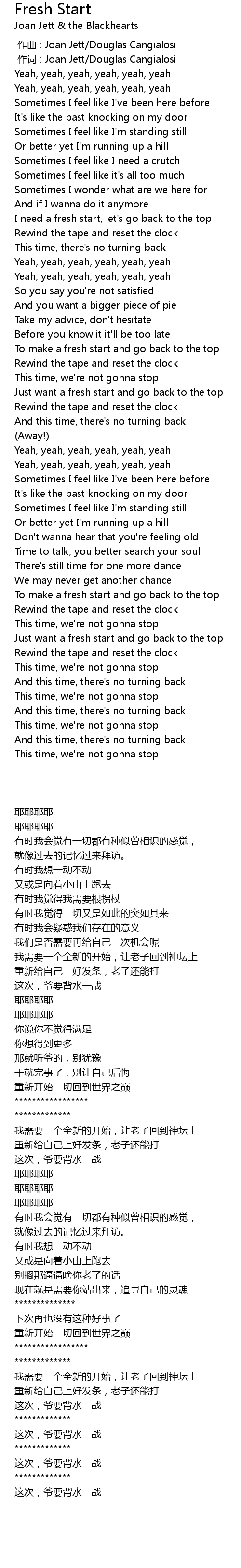 | [00:45.000] | I need a fresh start, let' s go back to the top |