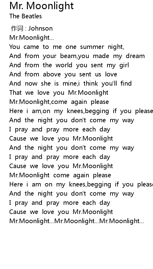 | [02:25.65] | Mr. Moonlight... Mr. Moonlight... Mr. Moonlight... |