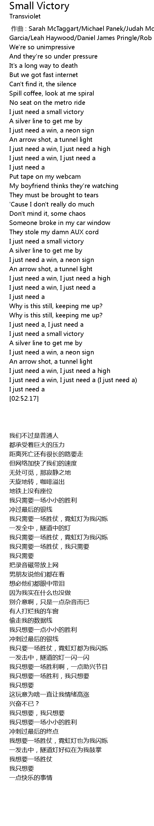 | [02:20.83] | I just need a small victory |