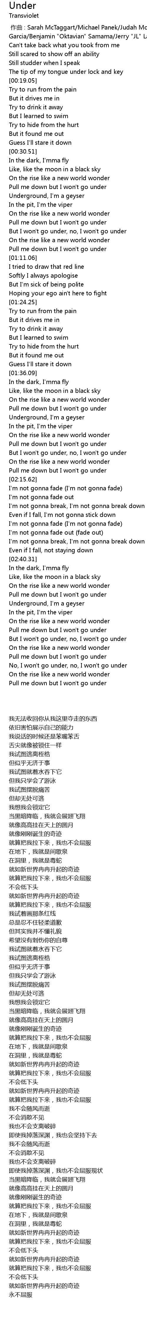 | [00:59.43] | But I won't go under, no, I won't go under |