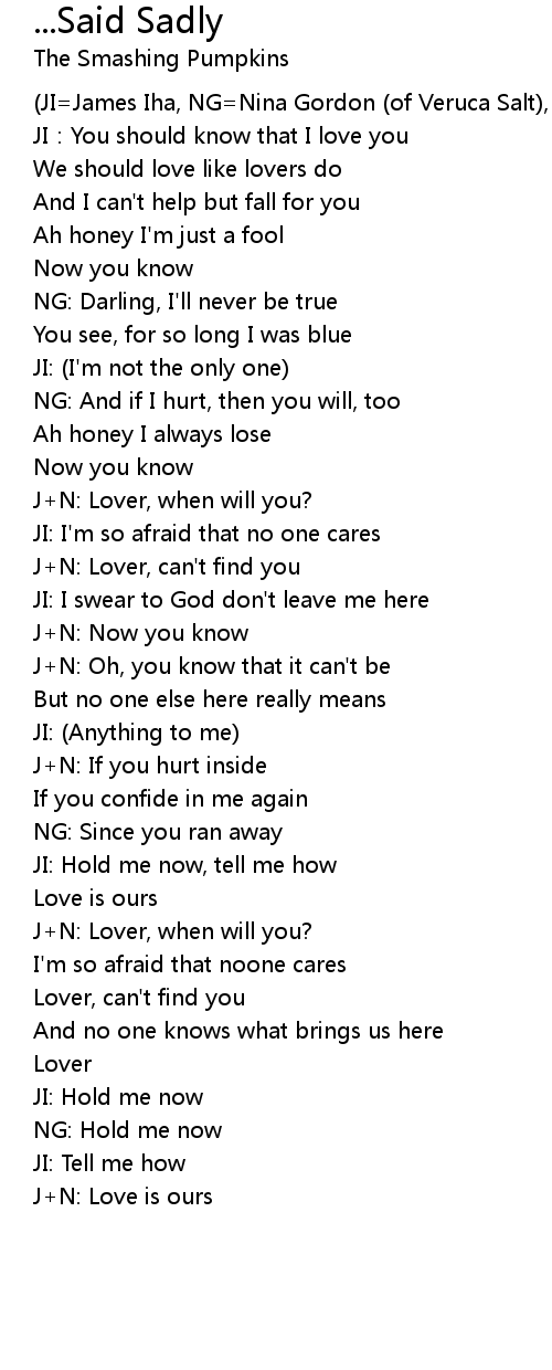 | (JI=James Iha, NG=Nina Gordon (of Veruca Salt), J+N=both) | |