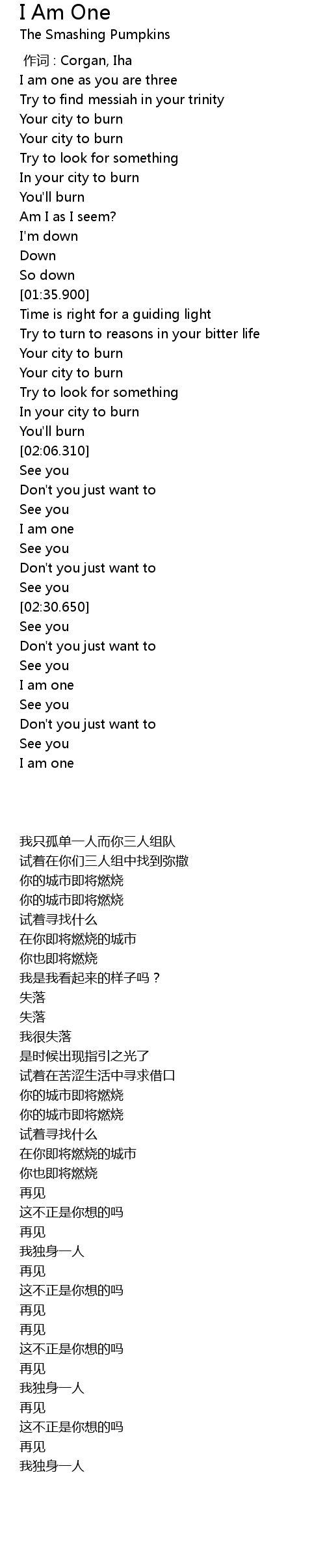 | [02:22.160] | I am one |