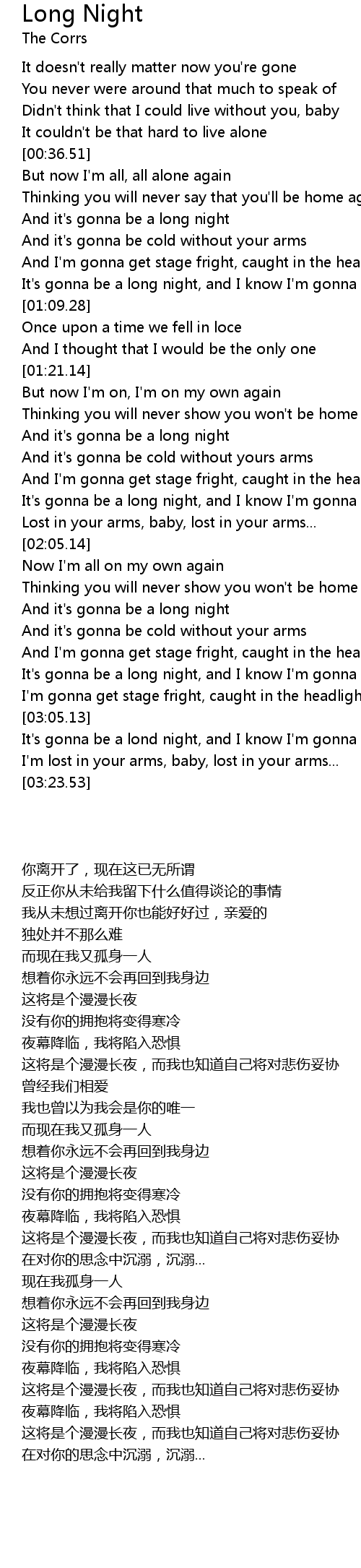 It's gonna be a lond night, and I know I'm gonna lose this fight |