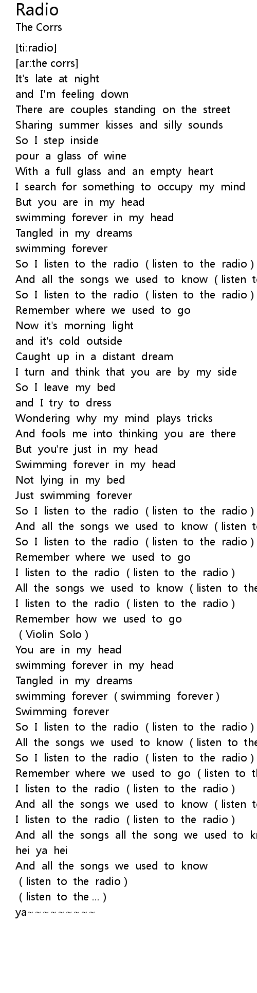 | [02:34.61] | I listen to the radio listen to the radio |