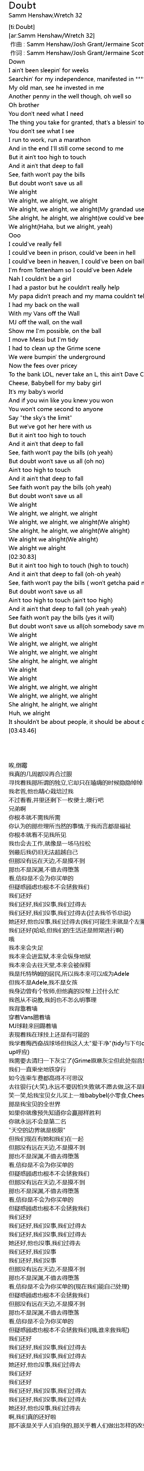 | [01:30.81] | 我需要去清扫一下灰尘了(Grime原意灰尘但此处指音乐流派,一语双关) |