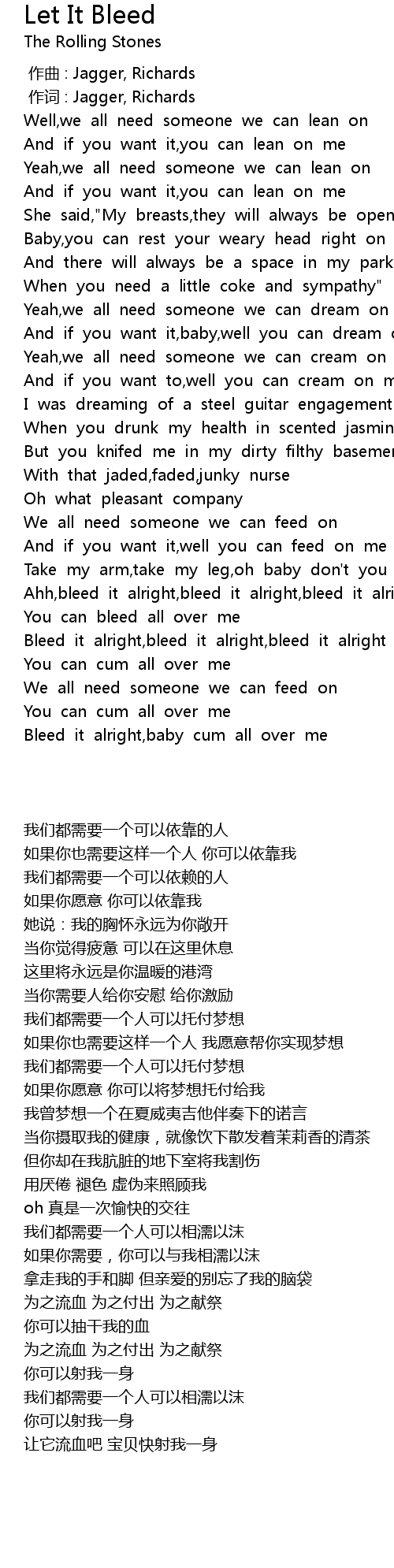 | [00:01.00] | 作词 : Jagger, Richards |