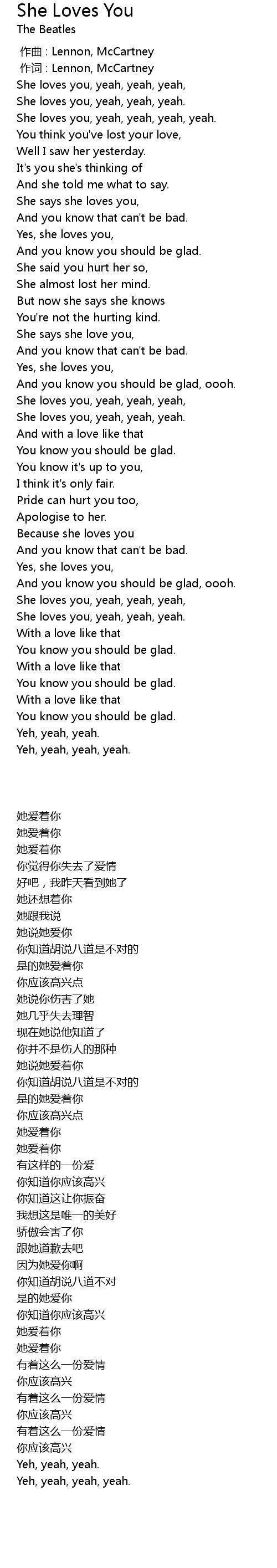 | [00:01.00] | She loves you, yeah, yeah, yeah, |