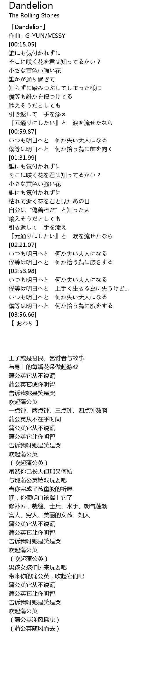 | [00:01.05] | Dandelion |