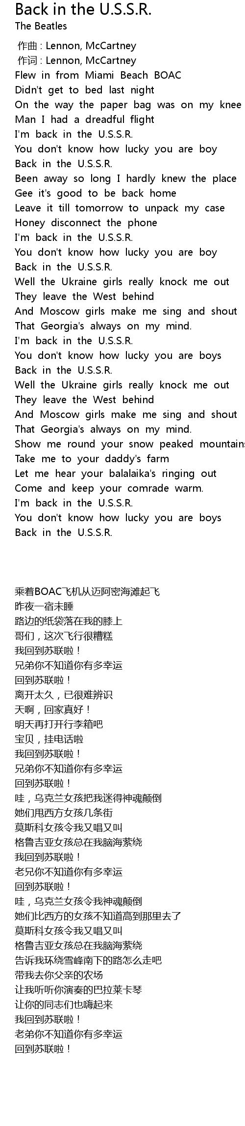 | [02:22.101] | Back in the U.S.S.R. |