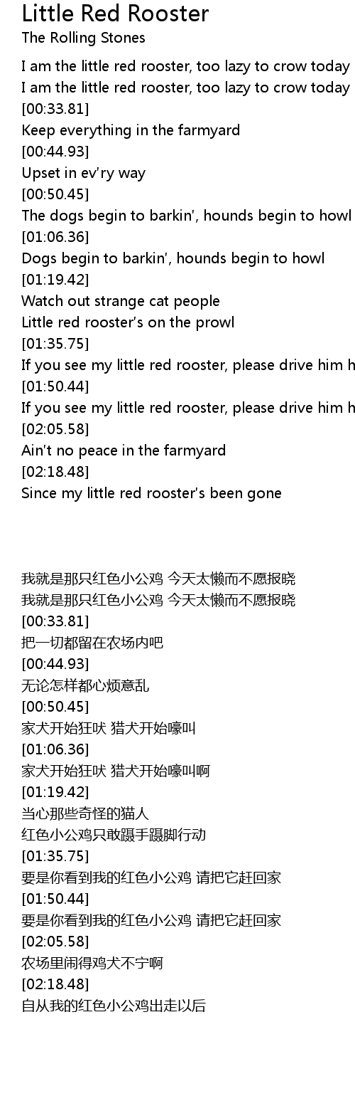 | [00:27.31] | I am the little red rooster, too lazy to crow today |