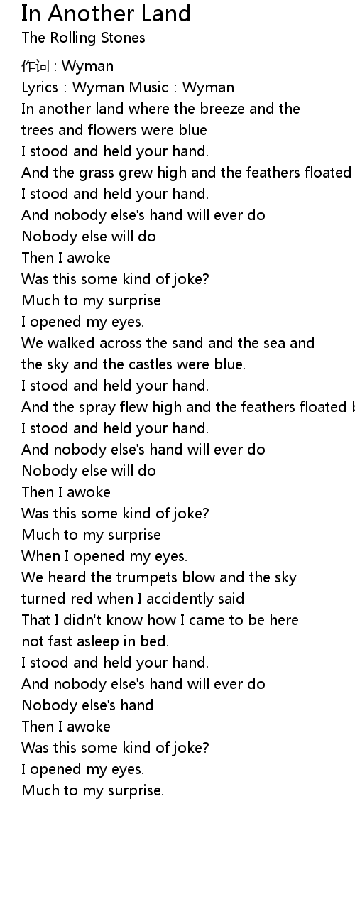 | 歌曲 | In Another Land |